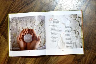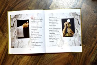 Kniha je milým a vhodným darčekom pre prvoprijímajúce deti. Obsahuje miesto pre fotografie, texty evanjelia, ktoré vysvetľujú Oltárnu sviatosť, svätú spoveď a sväté prijímanie. V závere sú detské modlitby a príbehy. Kniha je malé umelecké dielo, v dvoch farbách: modrá, ružová.
