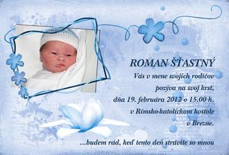 Dobrý deň,chceli by sme dať vyrobiť oznámenia o krste, krstiť ideme naraz 3 deti(súrodenci), vek 9,4 a 5 mesiacov ,sú to 2 dievčatká a 1 chlapček, podklad by mal byť asi neutrálny zelený alebo neviem aký, len je to 26.11.2017,kedy by mohli byť pozvánky hotové, na pozvánke by sme chceli mať 3 fotky a krátky text,ďakujem za odpoveď .Spolu asi 15 ks.na fotopapieri ,cena by bola aká .