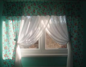 Bavlnené závesy kombinované s mušelínom, v hornej časti všité do záclonovej pásky....