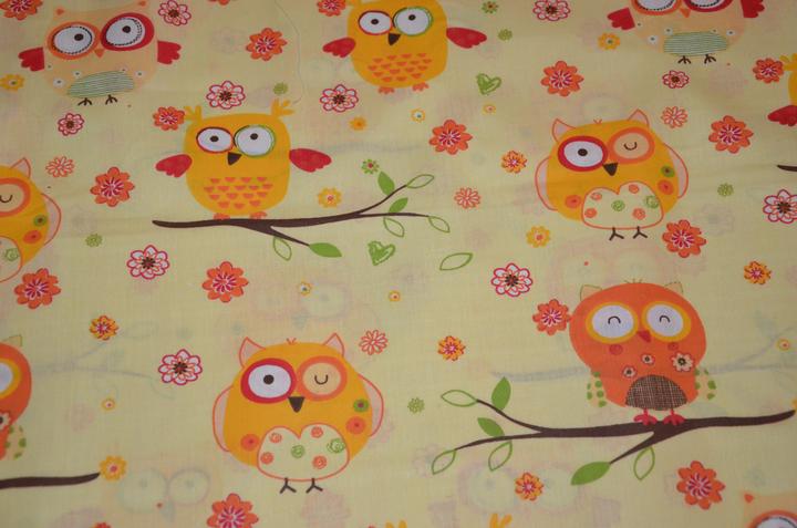 Populárny motív sovičiek - detská 100 % bavlnená látka s milým motívom pestrofarebných sovičiek na ružovom, béžovom a oranžovom podklade. Vhodné na šitie rôznych vecí do detskej izby, ako aj do romantickej spálne. Gramáž je 135 g/m2.Cena je 3,80€/m