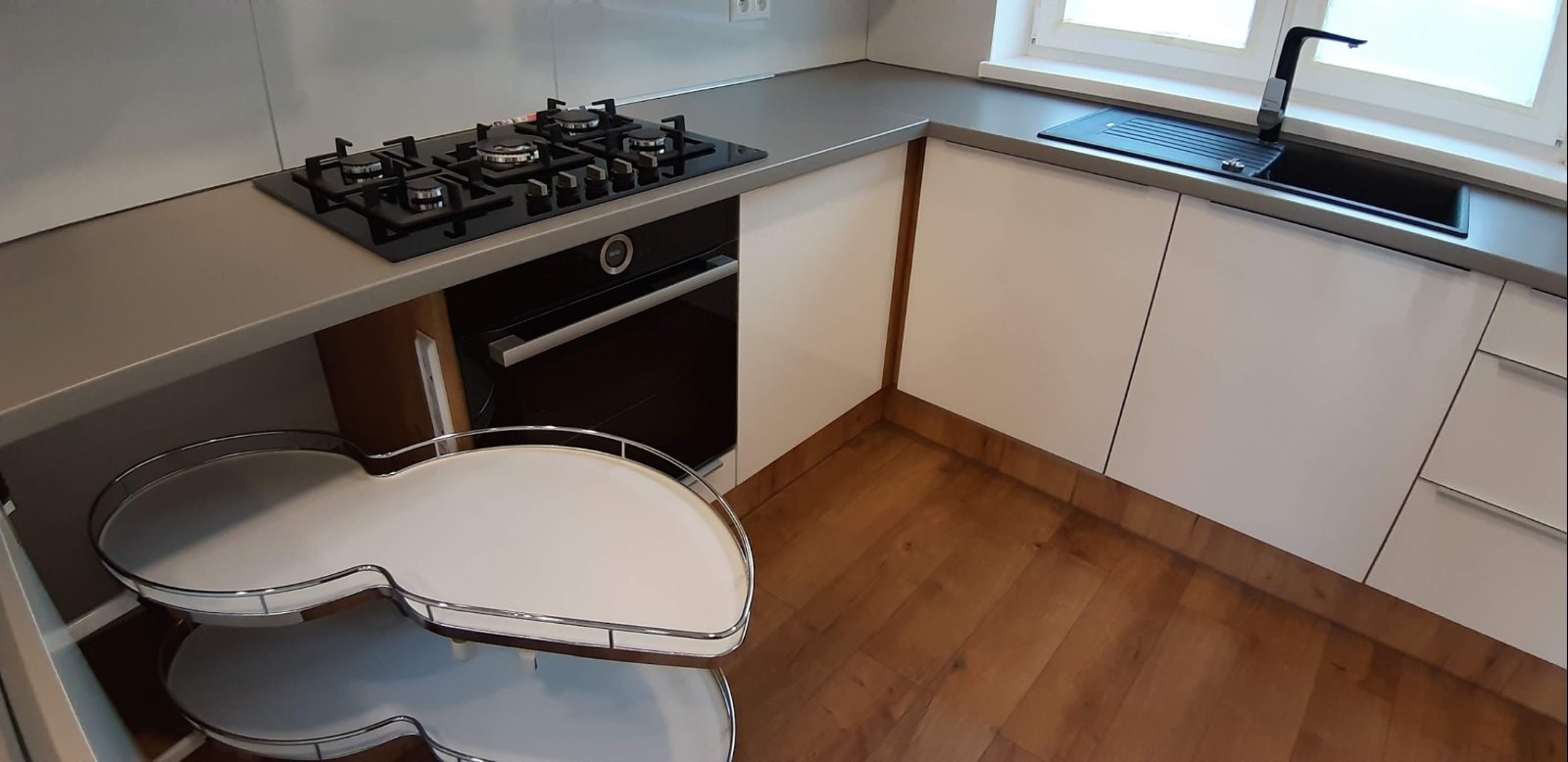 Ja mám také výsuvné dvoj košíky, vytiahnem jeden a keď sa chcem dostať za rok, posuniem ten košík celý do strany a potom vytiahnem ten čo je za rohom. Som s tým spokojná, úplne v rohu mám veci čo nevyťahujem denne a v prednom košíku, veci čo sa denne vyberajú.