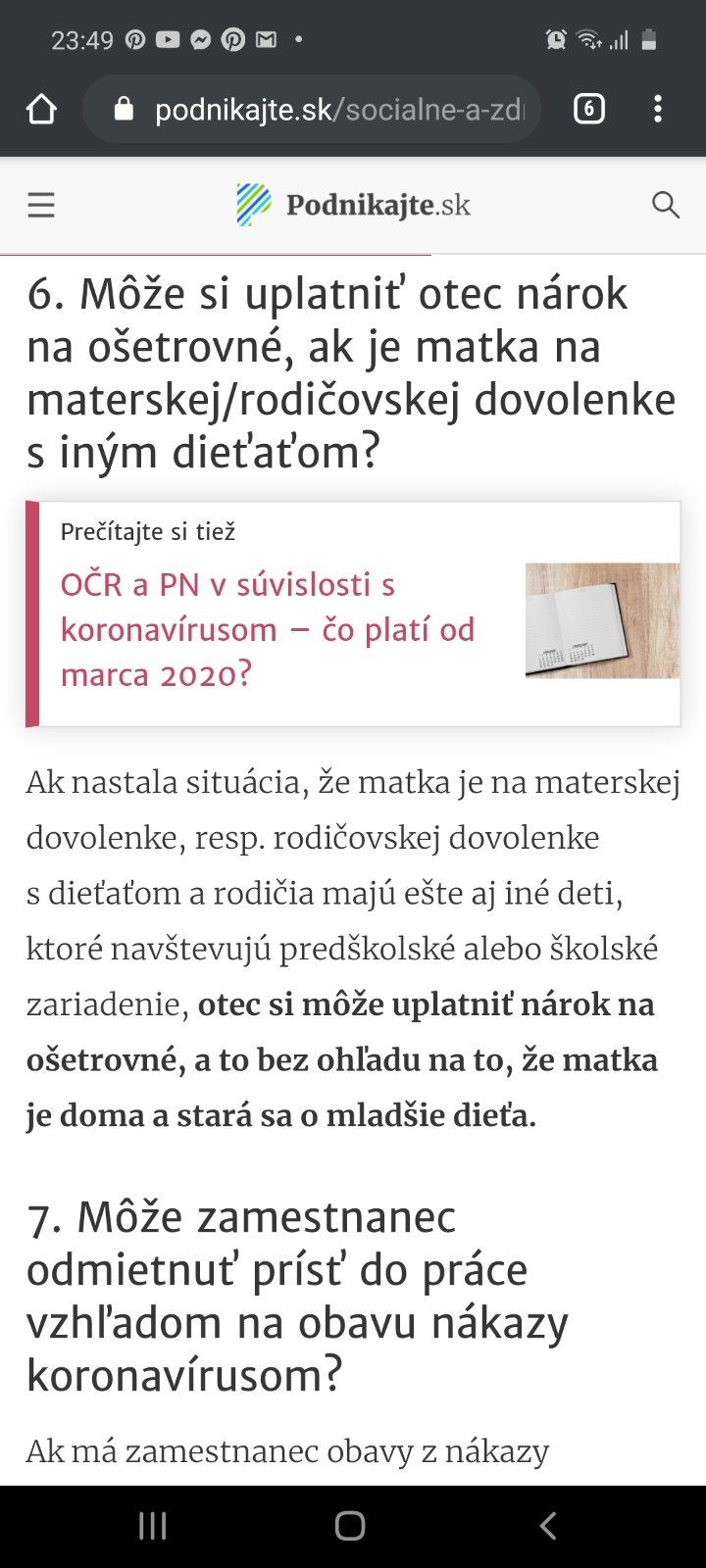 @slawana Nejedna sa o mna, hovoril mi to muz ohladom kolegu, tak ma zaujimalo ako to je. Ked je zena doma s detmi, na jedno berie RD na to mladšie, ci moze muz na staršie brat OČR. Nemyslim teraz pandemicku OČR. Ďakujem za všetky vyjadrrnia