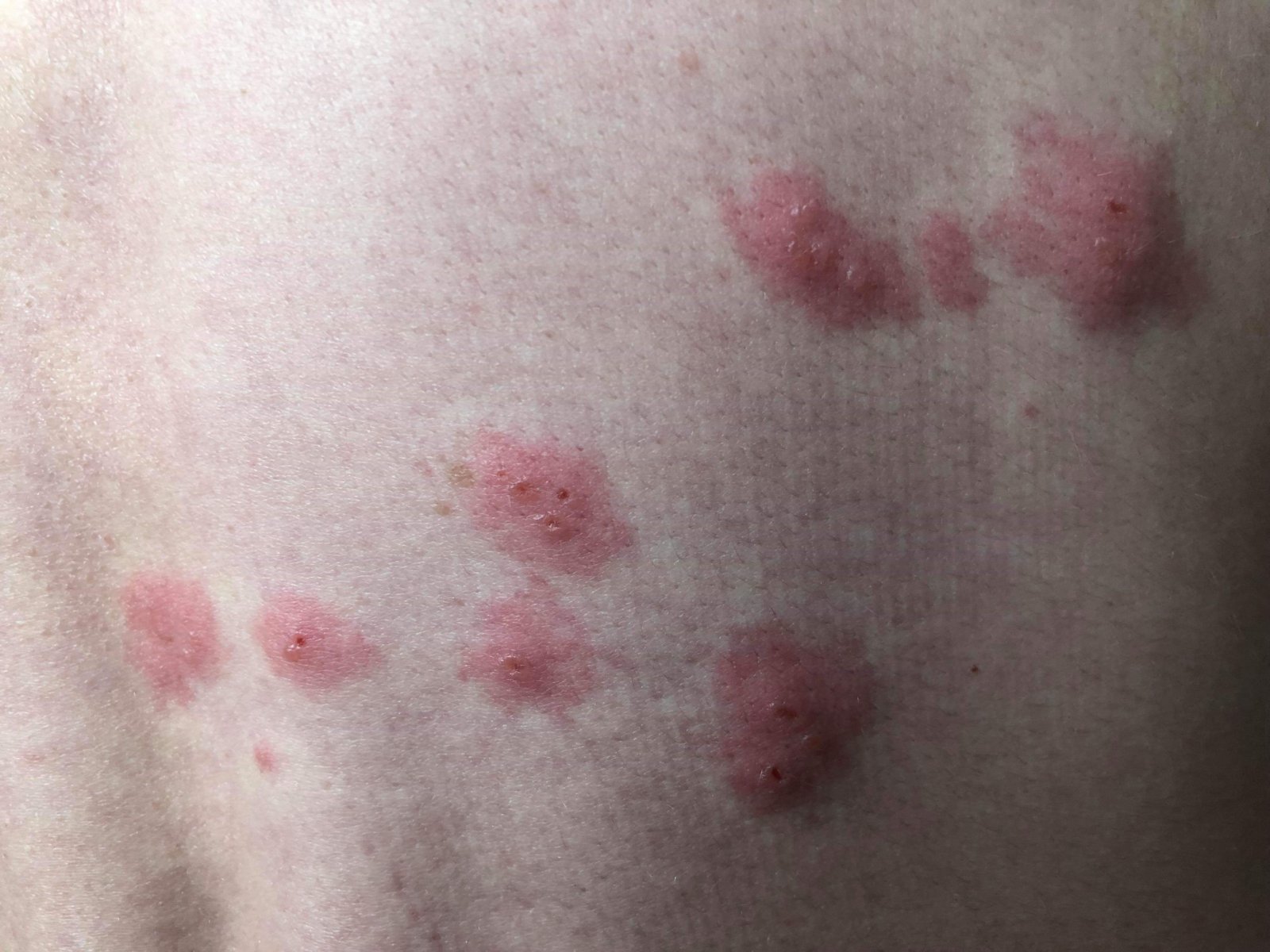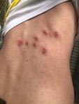 Vo štvrtok som si našiel v podpazuší hrčku , ktorá sa dá pekne nahmatať . Malá gulička . Tak som išiel ku obvodnej v piatok ktorá mi zobrala krv a poslala má na sono 23.7 . Keď som prišiel domov , našiel som si na chrbte tieto flaky , celá práva strana je bolestivá , tak isto pri kontakte z tričkom alebo z niečím , mám zimnicu , len na pravej strane telá , vyrážky sú bolestivé a svrbia . Ja ako lajk som nevedel že toto je infekčné a pre priateľku to môže byť rizikové ktorá je tehotná.... tak som na par dní odišiel .