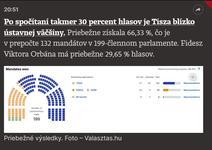Po sčítaní takmer polovice hlasov má Tisza 67 %. V parlamente by tak mala ústavnú väčšinu. Strana Fidesz Viktora Orbána má momentálne 28 %. Do parlamentu by sa s 3 % hlasov dostala aj extrémistická Mi Hazánk.