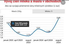 @irusa ja som ten graf nevyrabala, ale pockaj chvilu, Statisticky urad vyda data za september koncom mesiaca, za oktober budu az v decembri. Ked si spomenies, mozes si to tam najst. Su tam uvedene priemerne spotrebitelske ceny, kde je zaratana kazda kocka masla, ktora bola predana aj s cenou, za ktoru bola nablokovana
