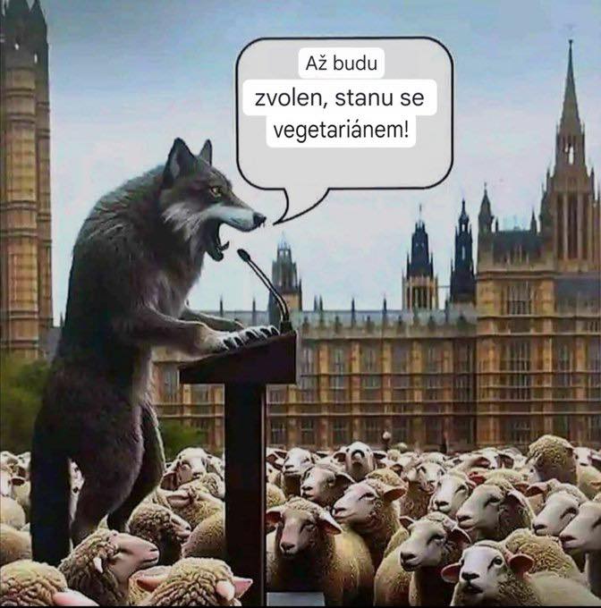 A po zvolení….co tam po tom,že sa z neho vegetarián nestal, naďalej tie ovce bude trhať ,ale ved koniec koncov “každý by to iste urobil”