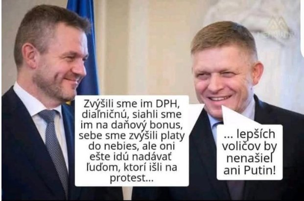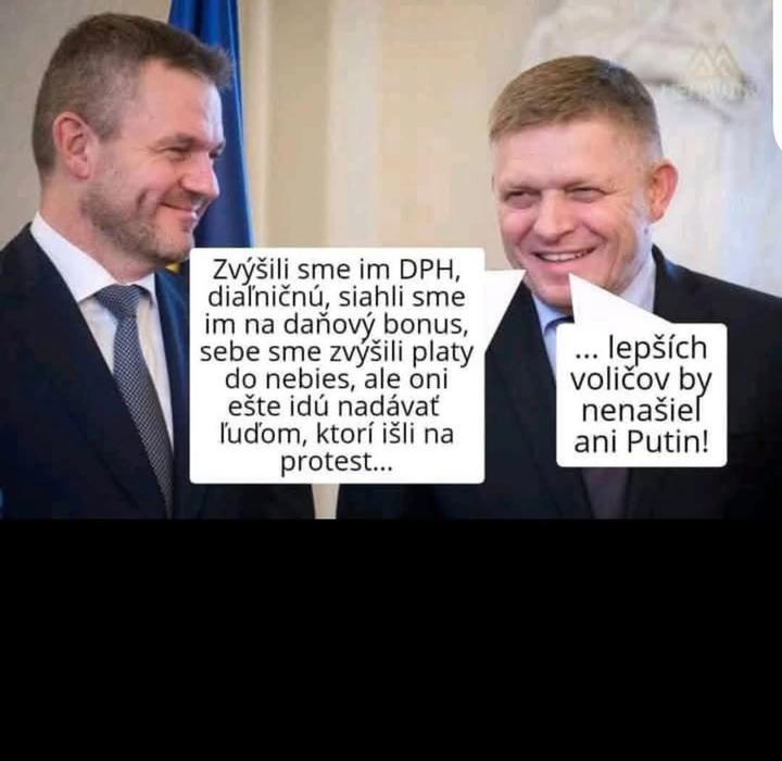 @thinna33 naozaj? to som rada za toto zhrnutie, lebo vidim ako konsolidujú na svojich prijmoch. Pred volbami nevedeli, ze bude treba konsolidovat? ze slubovali hory-doly pre ludi? tak zatial si odsuhlasili náhrady 5000 eur, sudruhovi dozivotnu rentu, suhaj estok si chodi na formulky a na futbal do nemecka, ficiak do hanoja, tak som rada, ze idu ludom prikladom....a este posledna vec, ja uz som staršieho dáta a ešte mečiar nám tu sluboval male Švajčiarsko, takže si to zhrnme, za 36 rokov od revolúcie nepočúvame nič iné iba, že si musime utahovat opasky, za tú dobu bol vacsinu casu pri moci terajší sudruh, takže čo sa rozkradlo rozkradlo sa za neho však? to musíš uznať, takze kedy už konečne bude dobre????? že už nebudú musieť ludom zdanovať aj vzduch, ktorý dýchajú?