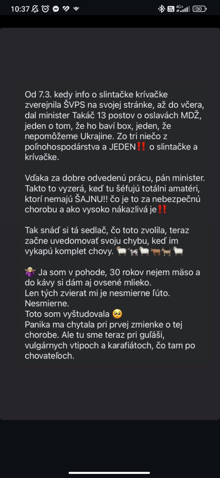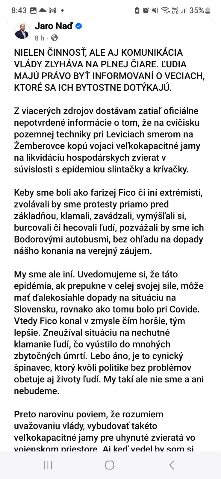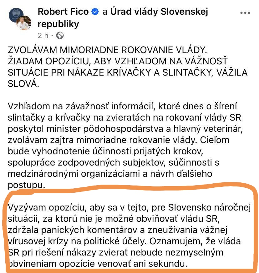 @victory1 ktovie, ako by to bolo, keby bolo vo vláde PS. Ale keď je vo vláde súčasná amatersko-zlodejska garnitúry, tak napríklad od 7.3. kedy info o slintačke krívačke zverejnila ŠVPS na svojej stránke, až do včera, dal minister Takáč 13 postov o oslavách MDŽ, jeden o tom, že ho baví box, jeden, že nepomôžeme Ukrajine. Zo tri niečo z poľnohospodárstva a JEDEN‼️ o slintačke a krívačke.