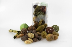 DEKORATIVNÍ SUŠENÉ PLODY ZEN therapy - dekorativní sušené květy a plody laděné do zelených a přírodních tónů, neparfamenované, ruční výroba, v dárkové plastové krabici, rozměr krabice: 11 x 11 x 23 cm.