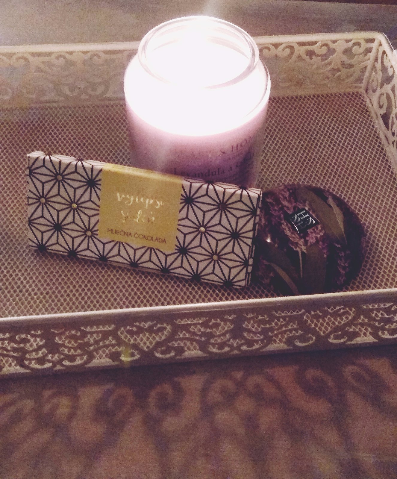 #test_heartandhome Pohodova filmova noc s upokojucou vonou levandule a salvie. Svetlofialova farba vosku a dekoracny vrchnak s krasnym prirodnym motivom dotvara zazitok zo sviecky. Zatial jemnucka, nevtierava..uvidime ako sa rozvinie 😊
