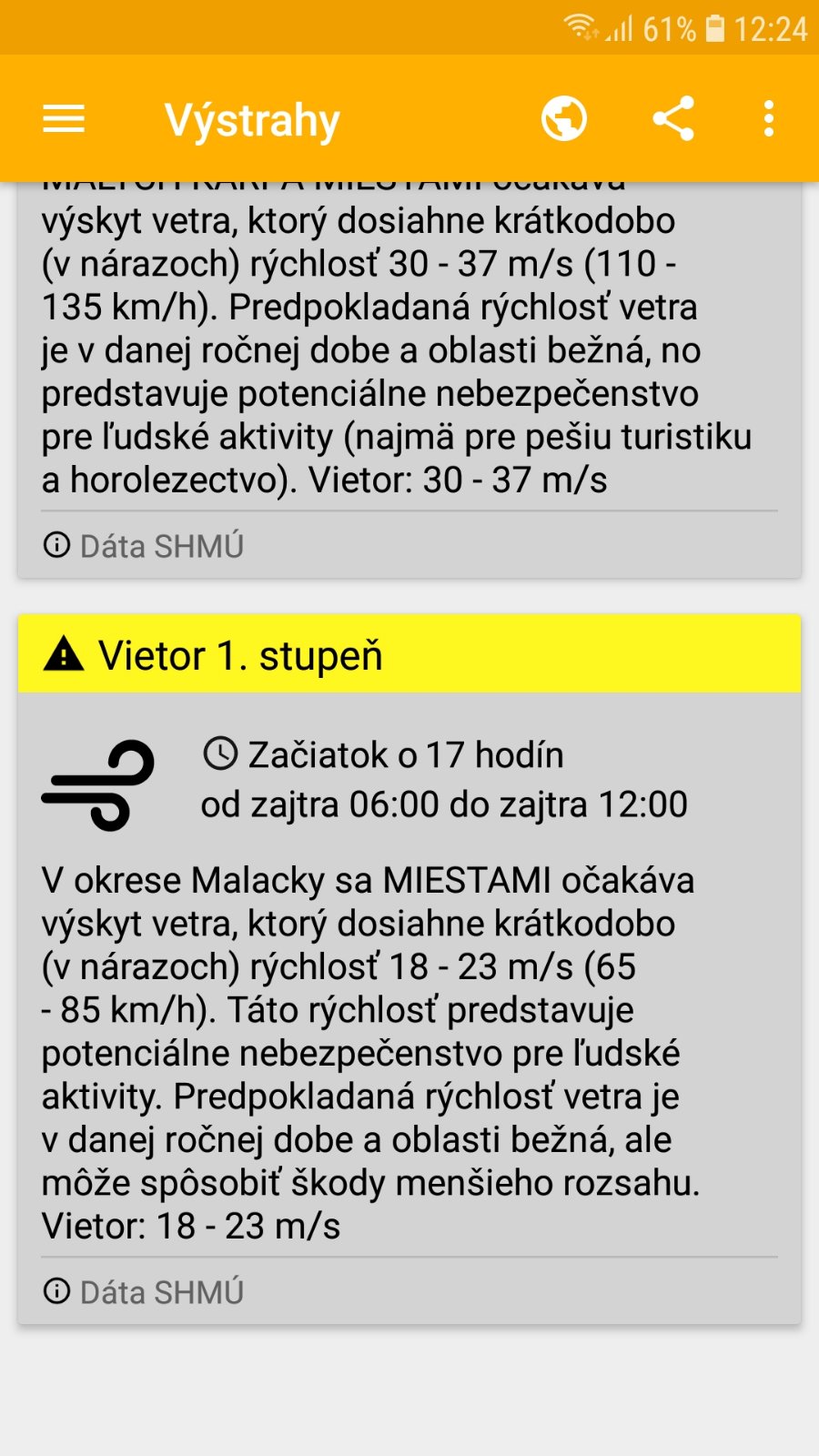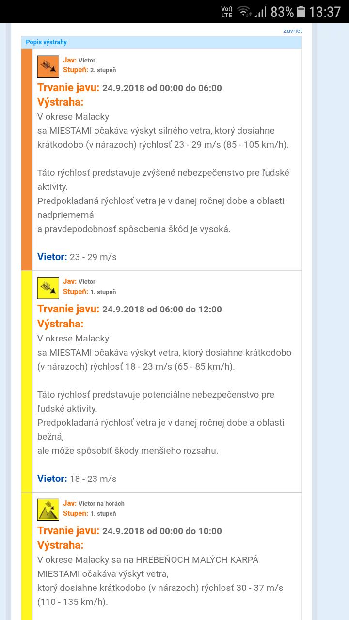 Pozerám už 2 dni na predpovede počasia...ako vnímate vy to hlásené vetrisko čo má prísť v noci? Ja neviem,ja mam z toho strach,idem o 7 z domu do roboty,ok,len myslím na syna,ak bude naozaj taky vetrisko,ci ho nechám deň doma. Je to chrďús,ak naozaj bude o sile 105km/h tak tu cestu do skoly nedá.