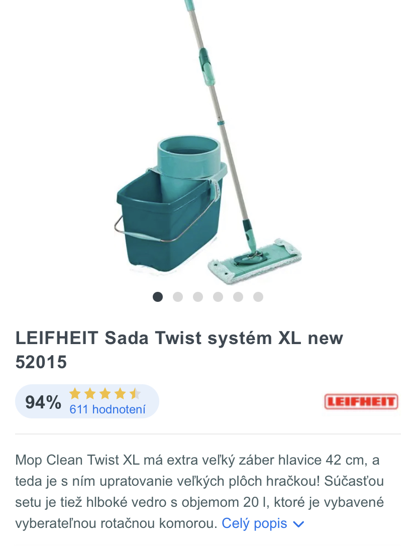 @evinka3007 za mna vileda plocha, mam ju 6ty rok a je stale ako nova...nemusis si namacat ruky ani zmychat...pre mna velmi pohodlne umyvanie 😊
