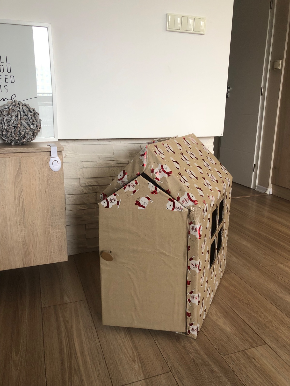 My sme raz urobili pre synceka takyto mini domcek, vyuzili sme velku krabicu z dmka.