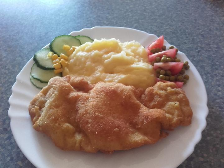 Vyprážané rezne, vyprážaný syr+kopec tatarky, syr, zemiakové placky 🙂