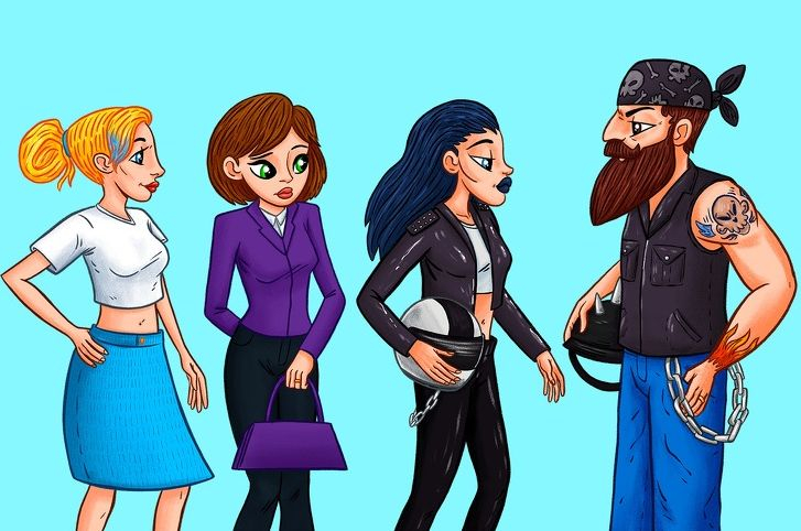 👉Na obrázku je motorkár a tri ženy, iba jedna je jeho manželka.
