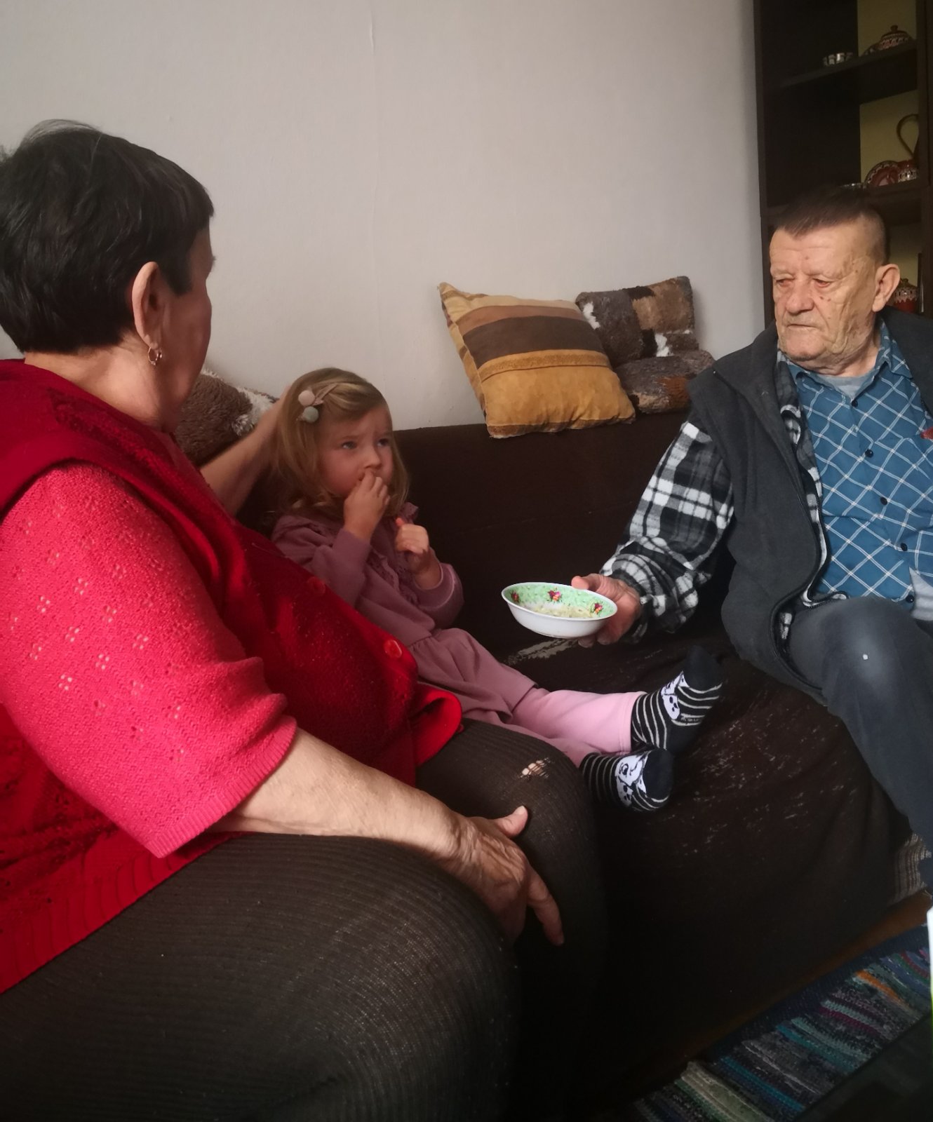 To je krásna foto, starká ako ju hladká po hlave a starký drží tanier a pozerá, či jej chutí 😍 "stredobod vesmíru" pre nich ❤