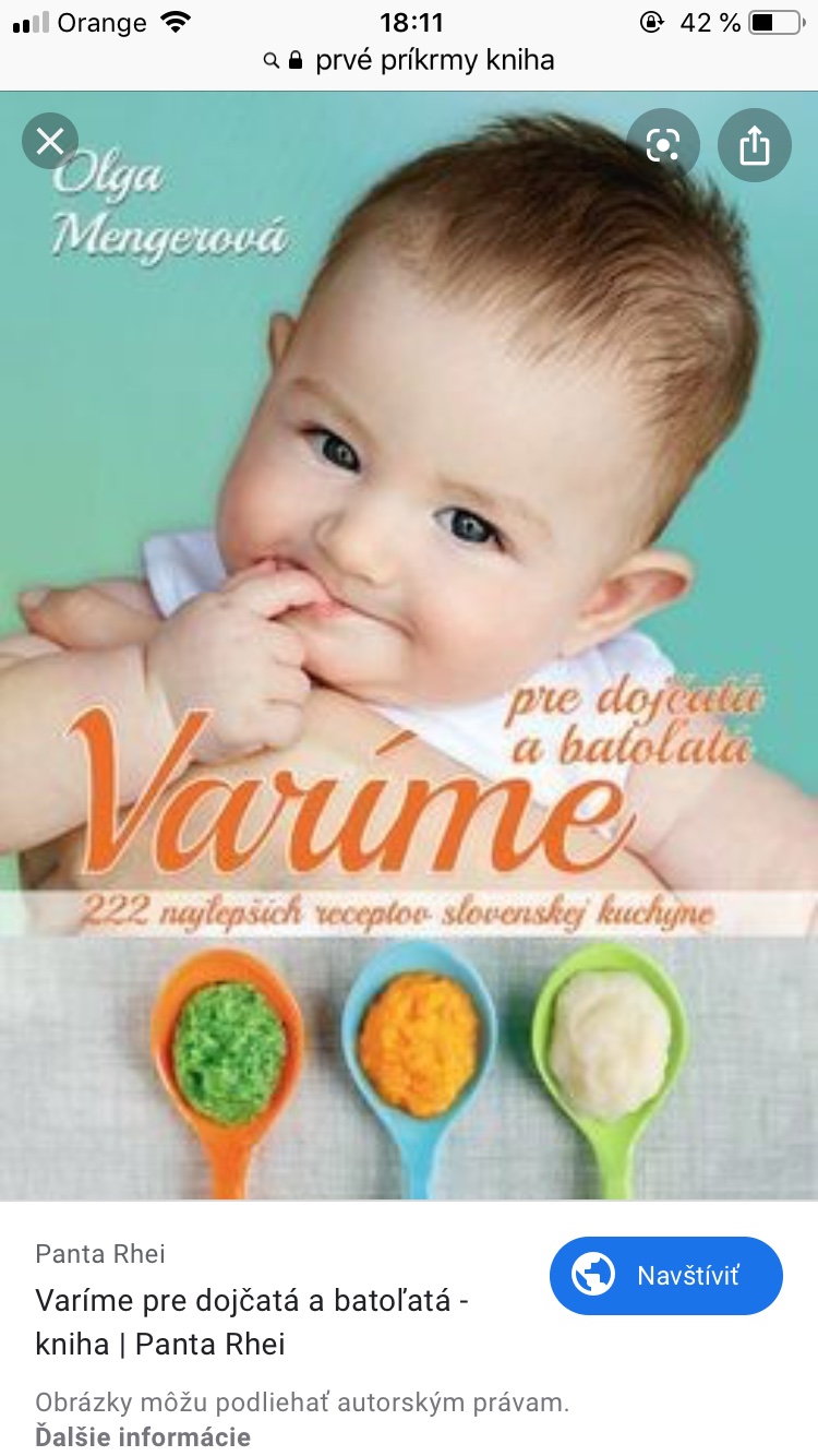 Ja si chcem na prvé príkrmy kúpiť knižku, nech viem, čo kedy Hanči dať🥕🍖🍼