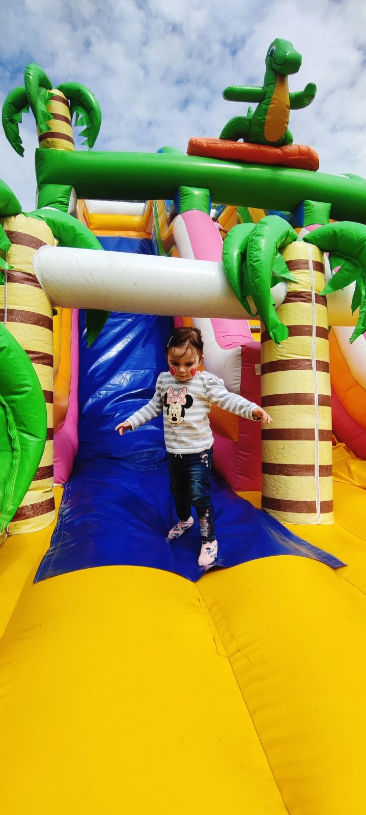 Dnes športový deň na ZŠ s "veľkým" bratom 💕 prvé maľovanie na tvár ❤️a vytúžený skákací 🏰 a samozrejme dobroty 😁😜🥰