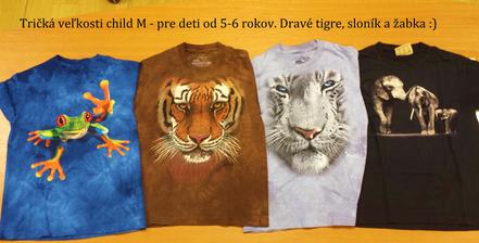 Vybral som tričká, ktoré sú na fotke, krásne však? Pre najmenších je u nás pre deti od 3-4 rokov (veľkosť child S), druhá veľkosť je child M pre deti od 5 - 6 rokov. Práve z týchto dvoch veľkostí som dnes namixoval výhodný koktail pre tie z vás, ktoré majú doma tigra, žabku, žirafku, indiána alebo malého sloníka ;)