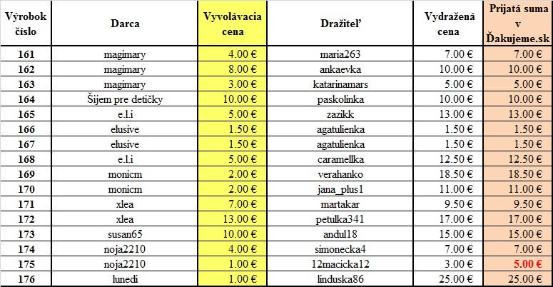 Aukciu sme ukončili v sobotu 9.4.2016 o 22:00 a v mnohých prípadoch bola "bitka" o výrobky do poslednej sekundy. Platí však, že prihodenia sekundu po termíne už nemôžeme uznať a víťazom je ten, kto pridá najvyššie sumu v termíne. Už počas aukcie sme vedeli, že suma bude úžasná a každým dňom sa zvyšovala, v posledných hodinách priam raketovo.