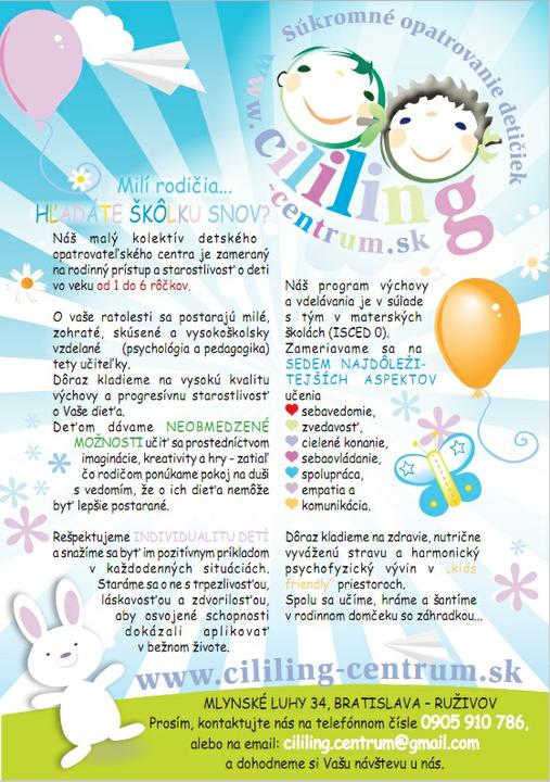 O Vaše ratolesti sa postarajú milé, zohraté, skúsené “tety učiteľky” s odborným vysokoškolským vzdelaním v odbore psychológia a pedagogika.