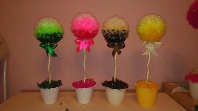 dekoracne stromceky ktore robim z organzy maju vysku cca 50-55 cm.ospravedlnujem ak neodpovedam na take otazky ze z coho su a ako robene ale uz velmi vela krat mam v albumoch napisane.