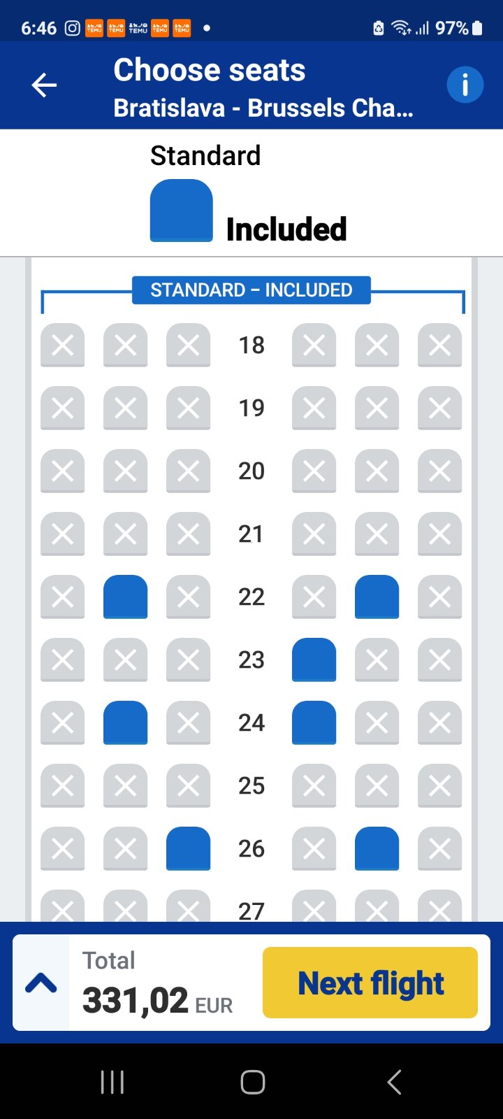 Chodime 4 a vzdy 3sedime spolu,este sa nestalo,aby nas uplne oddelili..nikdy nic nepriplacame. S muzom sme mali dokonca letenky z kiwi a tiez nas 2dali spolu co sme neverili,ze sa vobec v lietadle uvidime😁