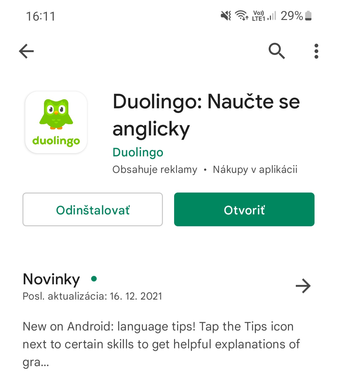 @belasy_motylik stiahnes si aplikaciu a potom si vyberies jazyk a ides je to zadarmo ale da sa aj kupit duolingo plus to nemam