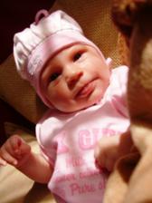 Ahojte vsetci! Narodila som sa 18.3.2008 o 15:10 v Bratislave, mala som 47 cm a 3060 g. Teraz je uz zo mna velka kocka, rada papam, spinkam, kupem sa a zo vsetkeho najradsej sa smejem🙂 Vsetci ma velmi lubia a mne sa preto na svete velmi paci !!!