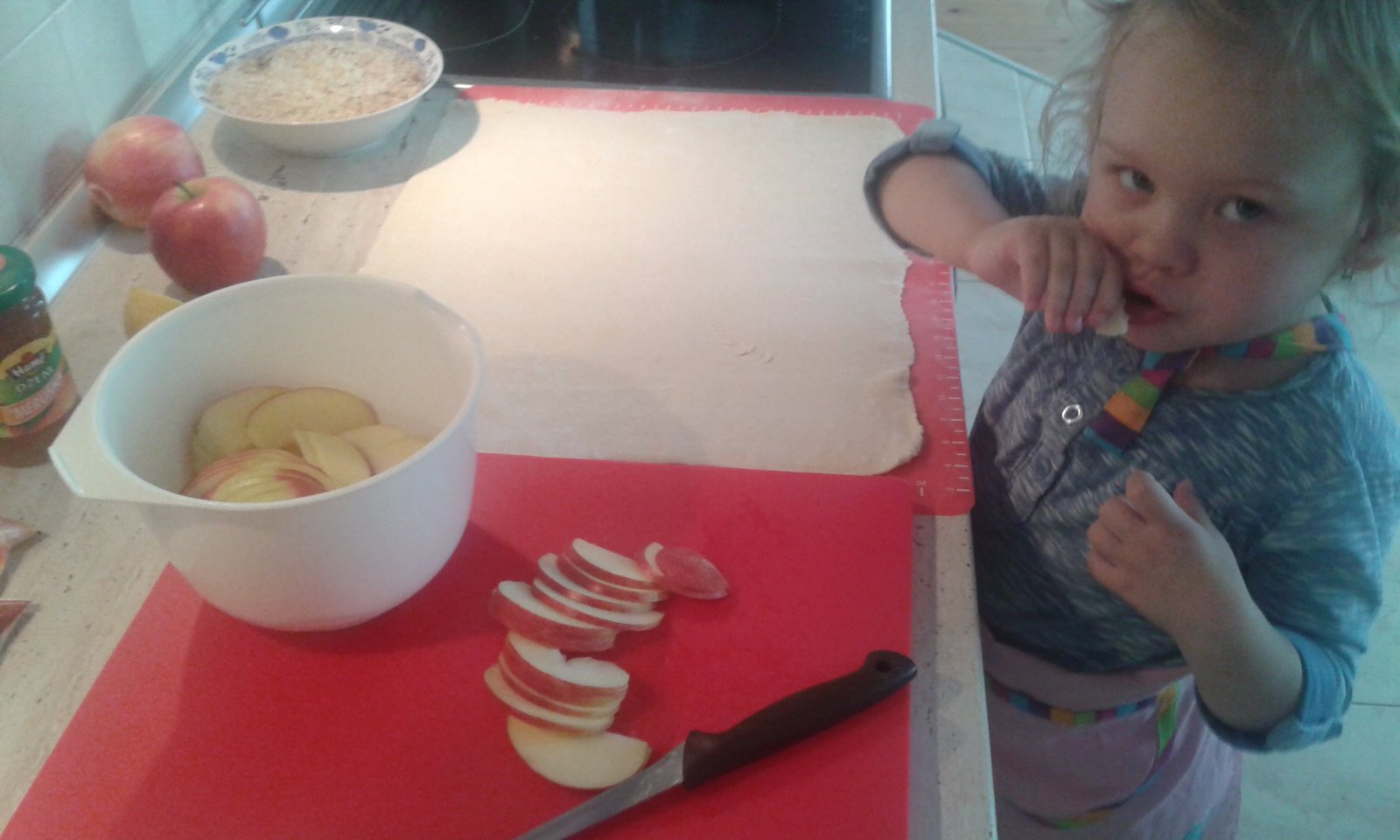 ..nakrájame si jabĺčka na tenké plátky, nezbudneme ich ochutnať :-)