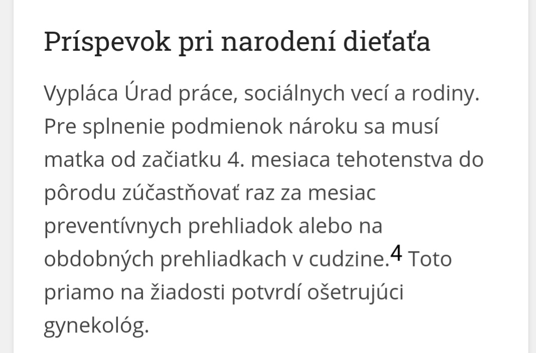 @juliaailuj1 to je len info, že si tehotná bola. Príspevok pri narodení dieťaťa dostaneš len vtedy, ak chodíš pravidelne na poradne.