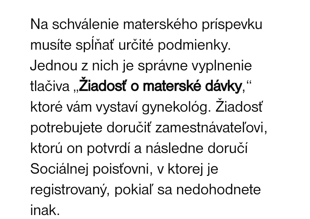 @juliaailuj1 materská je nárok, ktorý vyplýva zo zákona o sociálnom poistení. Teda ak splnas podmienky, nemá dôvod nevypisat. Podľa tvojej logiky by muži potom nárok mat nemohli.