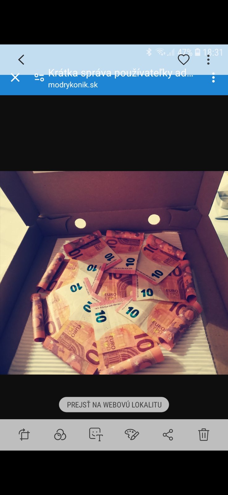Necitala som vsetky komentare, ja ked davam peniaze, snazim sa vtipne. Nas syn dostal takuto pizzu. Posielam ti tip. Bankovky das ake chces, velmi sa potesil, cakal pizzu a uz vobec necakal peniaze.Do vnutornej strany som nalepila jeho fotku+venovanie. Predosli komentar som zmazala, lebo tam bola jeho fotka,toto som stiahla z netu.