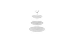 Etažér 3-poschodový Gastro 35 cm, biely. Taniere sú s priemerom 16,5 cm, 20,5 cm a 25 cm.