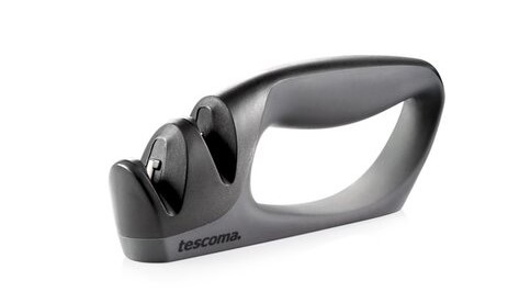 Brúska na nože Tescoma Precioso umožňuje jednoduché a rýchle brúsenie kuchynských nožov v dvoch krokoch. Karbidová brúska najskôr nože s hladkým ostrím nahrubo nabrúsi a keramickou brúskou sa potom naostria.
