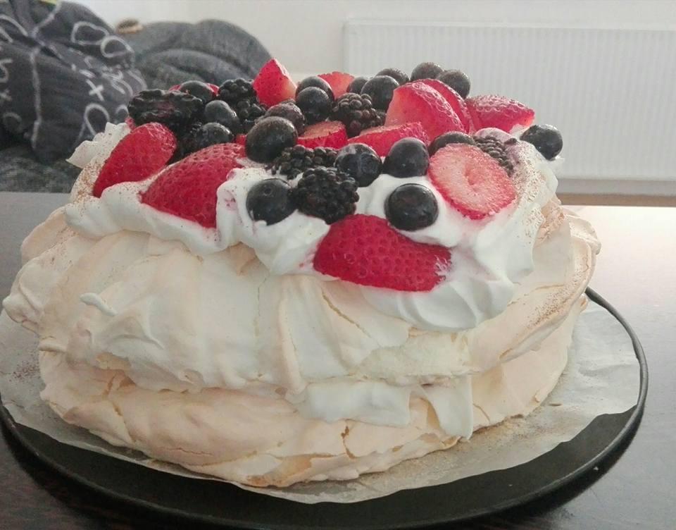 @kittyjuliette jasne to je pavlova torta nic tazke ja davam 6 bielok stipka soli vyslahat , pridat 100 gramov cukru, ked je to uz pevne tak este dalsich 200 gramov cukru a stavu z pol citrona a dve lyzicky zlateho klasu do toho za staleho miesania dat. Miesam vsetko asi 15 minut aby to bolo riadne pevne. Potom na papier na pecenia si nakreslim dva kruhy, a z hmoty vytvarujem kruh. Uz do rozpalenej rury dam mriesku uplne dole a na to dam kruh z torty na kt. je ten papier na pecenie a asi o tri stupienky dam plech opakom otoceny a na tom je druhe poschodie. Rura je teda rozpalena teplovzdušne na 200 stupnov a ked vlozim do rury korpusy znizim na 150 stupnov a peciem 35 minut nasledne este znizim na 100 stupnov a dopekam este 25 minut. ja uz nesusim lebo vzdy ked som susila splasla... 🙂