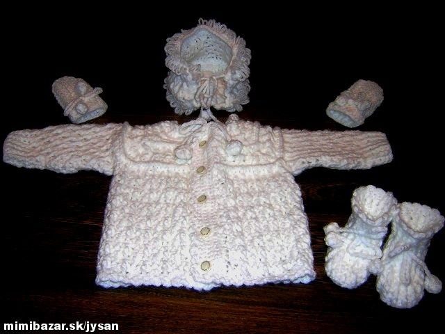 Ponúkam háčkované, pletené detské kompletíky – svetríky, papučky, rukavičky, čiapočky podľa Vášho želania … Detské bavlnené pančušky, perinky. Všetok ponúkaný tovar je nový.