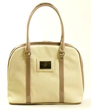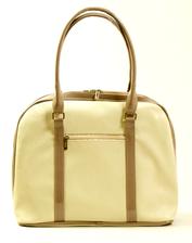 Elegatná dámska kabelka vyrobená z organického materiálu vo farbe bledá béžová v kombinácii s tmavo béžovou farbou.Tovar na objednávku.Dodanie do 15 dní.