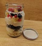 Ja si robievam do prace, mal už svoju mierku. Dal 4 pl ovsenych vločiek, 5 pl vody, jeden biely jogurt, ovocie podľa nálady, niekedy aj mrazenú zmes, niekedy hrsť orieškov, inokedy 1pl arasidoveho masla, alebo kokos a struhanu čokoládu 1 kocku.