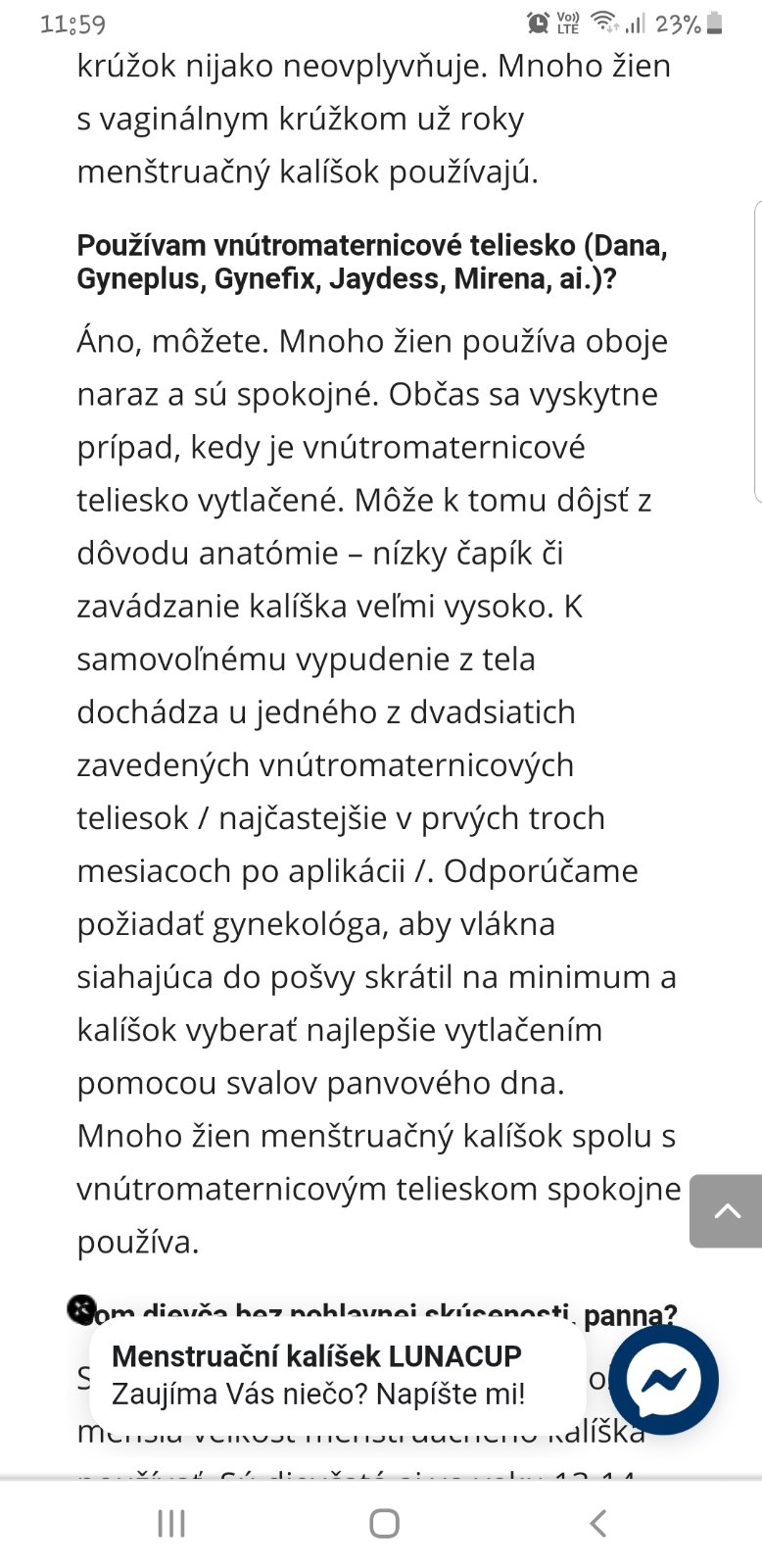 Baby, môže sa pri vnutromaternicovom teliesku Mirena používať menstruacny kalisok?