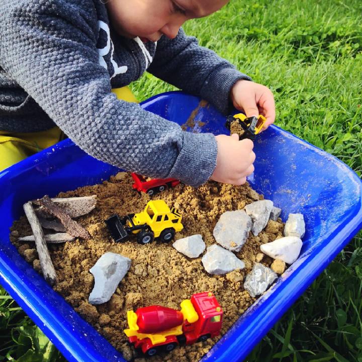 ➡️ Trocha piesku alebo hliny do detského fúrika, pár kamienkov, štrku, paličiek a samozrejme ťažké stroje z narodeninovej torty - robota u nás na dvore na minútu a zábava a radosť nevyčísliteľná. 🤩
