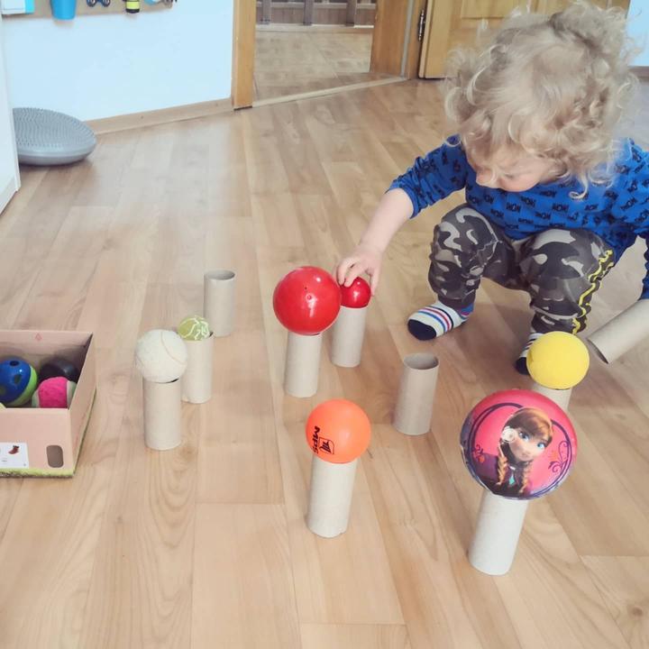 ✅ Zhromaždili sme všetky malé lopty, čo doma máme a ukladali sa na rolky z toaletného papiera.