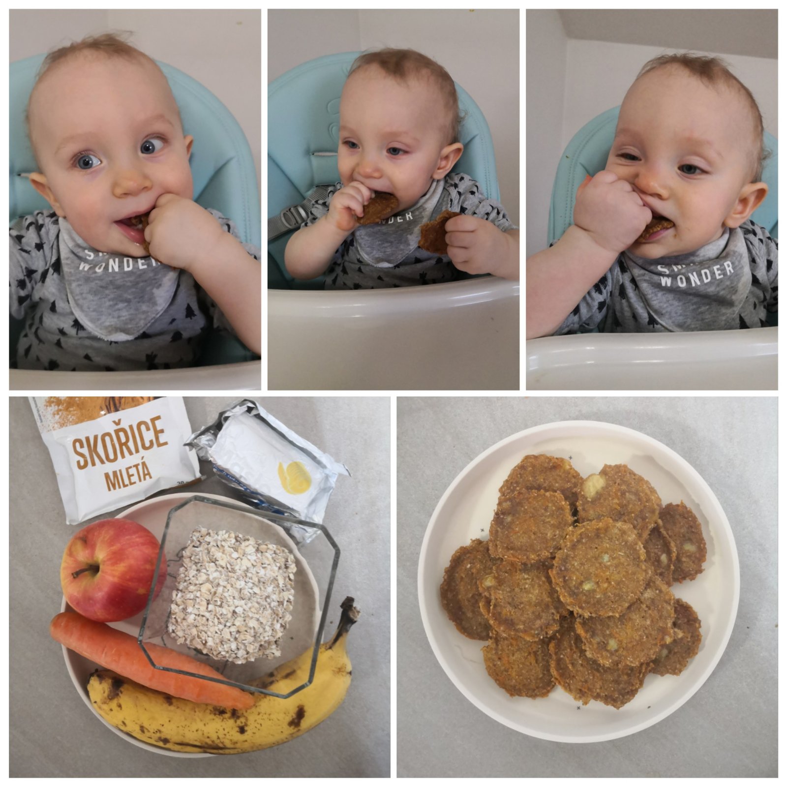 Ovsené vločky + jablko + mrkva + banán + kúsok masla + štipka škorice