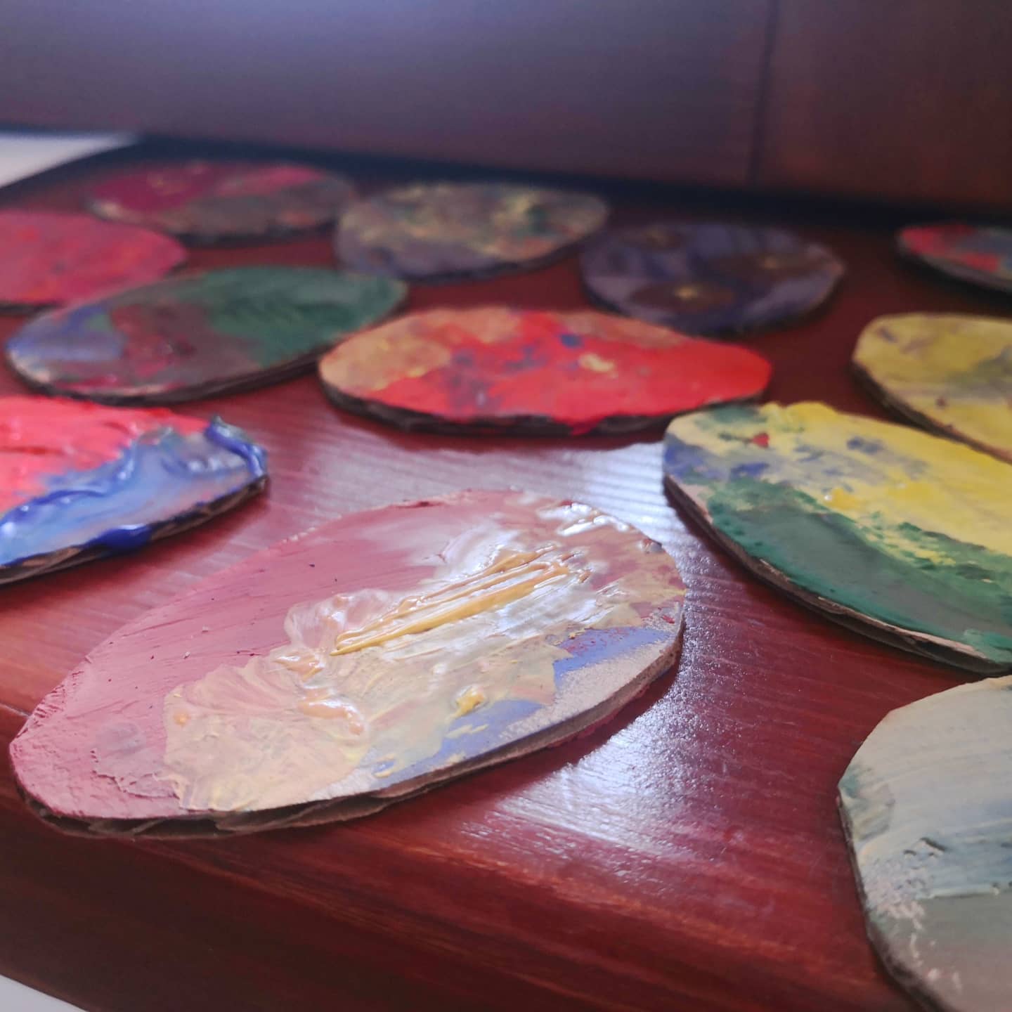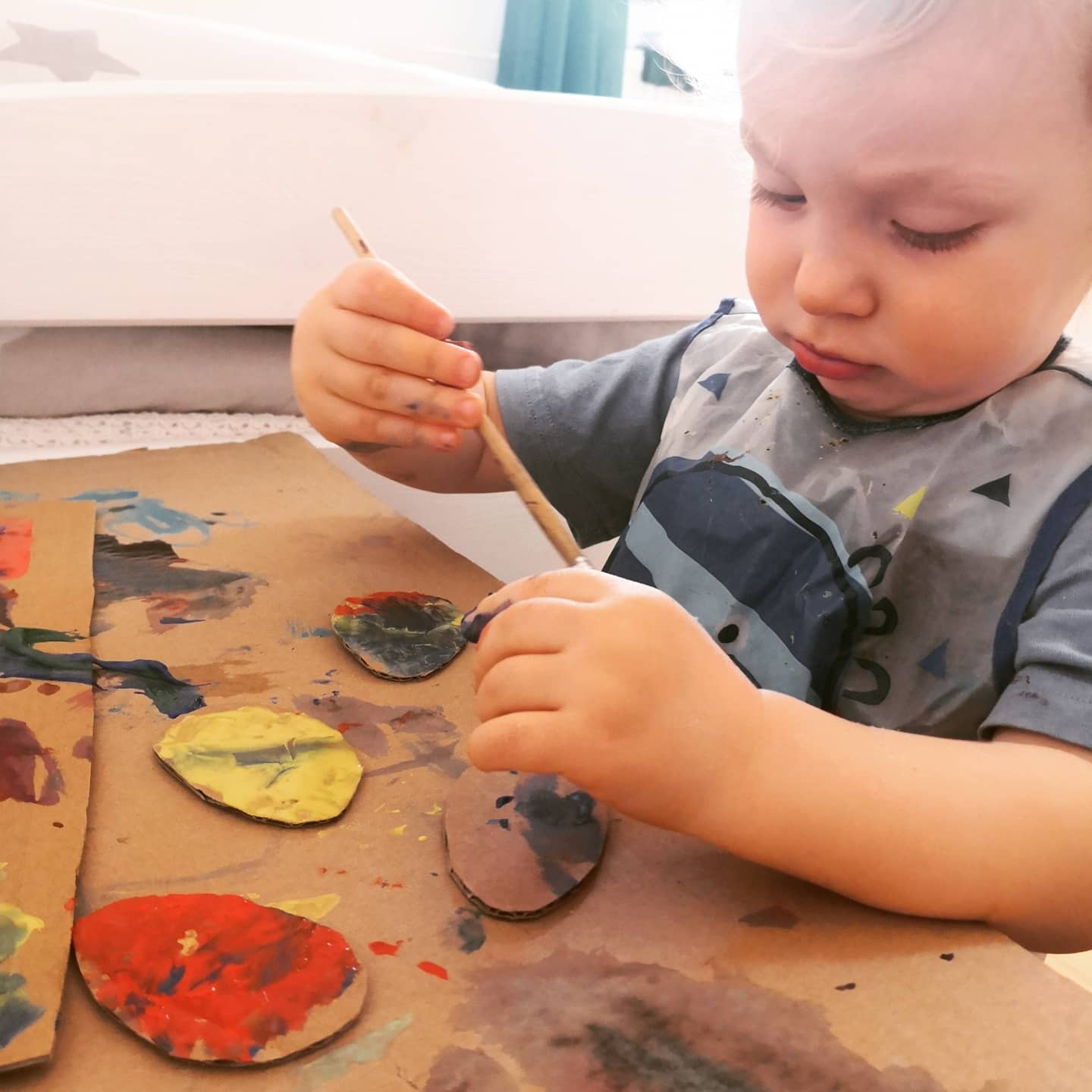 Nastrihala som z kartóna vajíčka a mladý pánko (22m) ich pomaľoval temperkami. Vystrihla som si aj malý kruh a nalepila naň vajíčka obojstrannou lepiacou páskou do tvaru venca. Pomocou stužky sme zavesili na dvere a tadaaaaa ... máme ďalšiu výzdobu 💪🥰