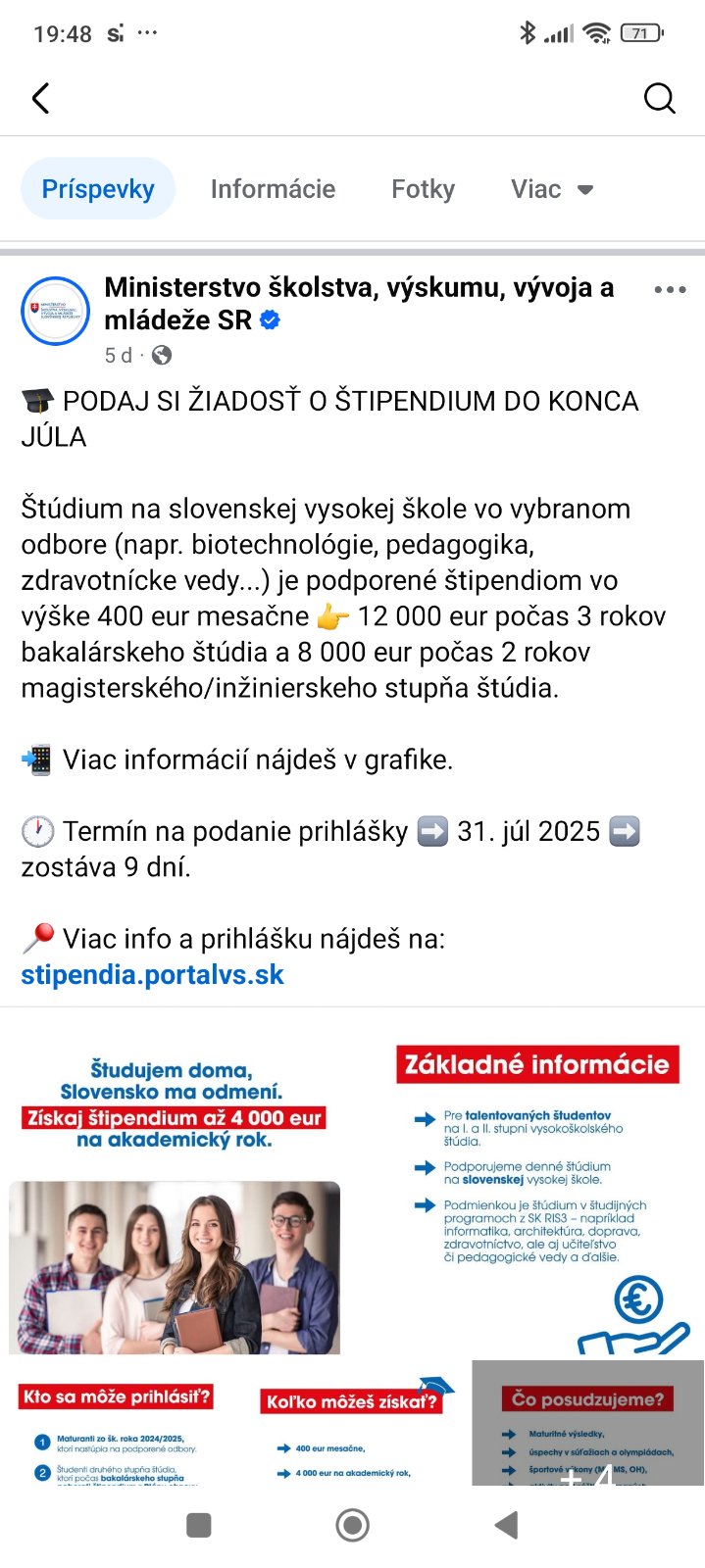 @koniarova ale toto nie je prospechové štipendium. Prospechové štipendium udeľuje škola vybraným študentom na základe prospechu. Toto štipendium udeľuje ministerstvo za to, že ostaneš študovať na Slovensku a týka sa to len vybraných odborov, takže nie každý o to môže požiadať.