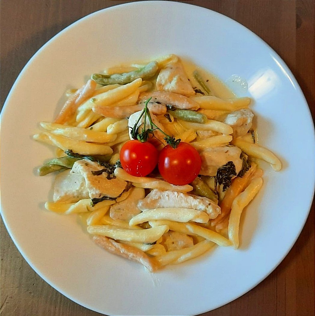 Cestoviny s morcacim maskom a spenatom,v smotanovo-syrovej omacke