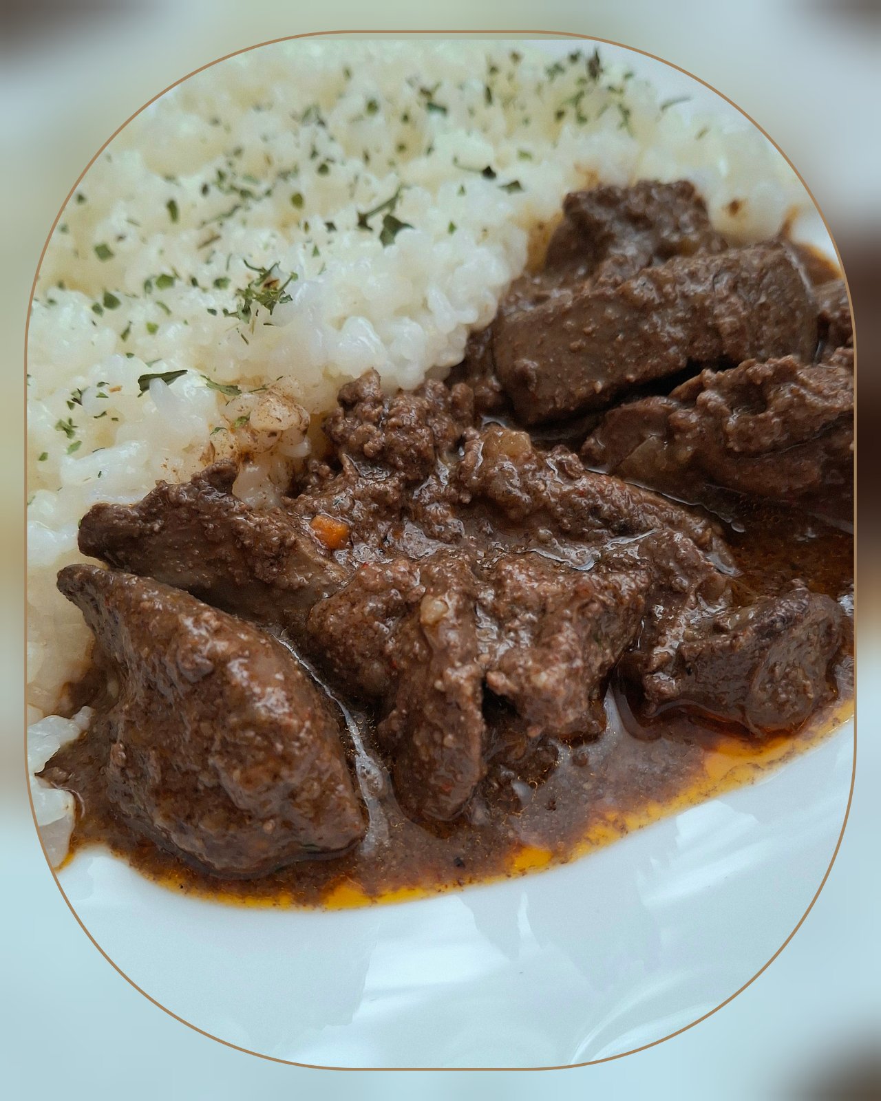 Kuracie pecienky na udenej cervenej mletej paprike,zahustene struhankou a Bask ryza