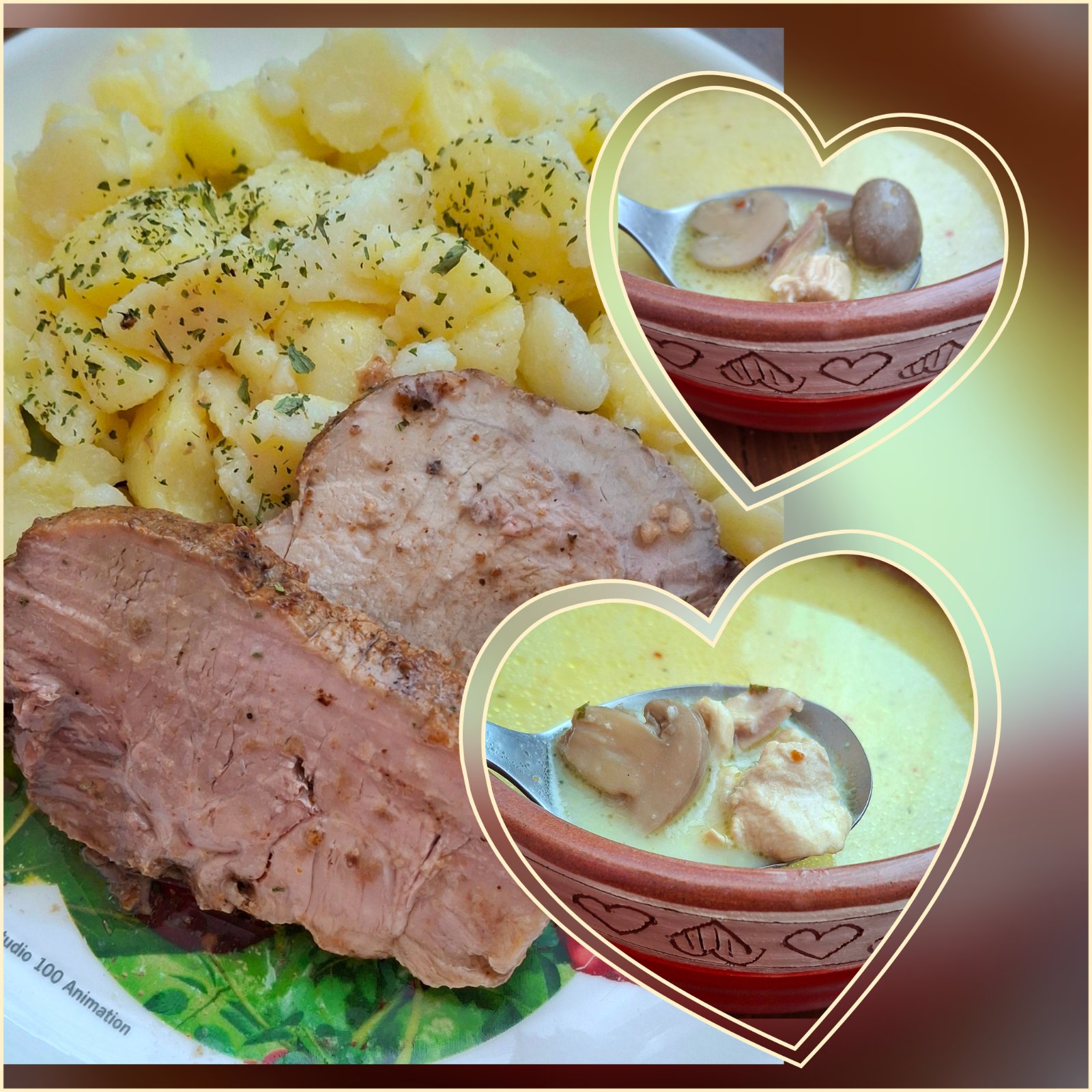 Thajska polievka,bravcove pecene pliecko a zemiaky