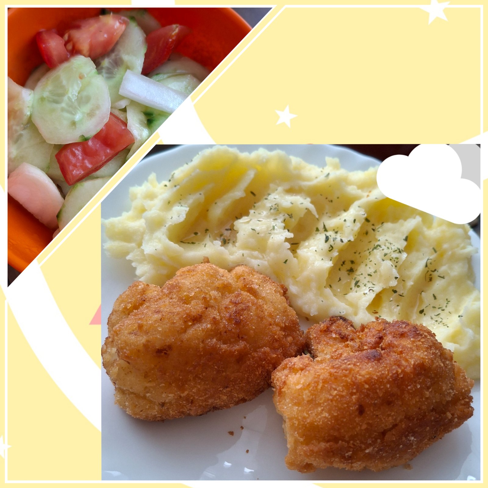 Karfiol,zemiakova kasa a zeleninovy salat