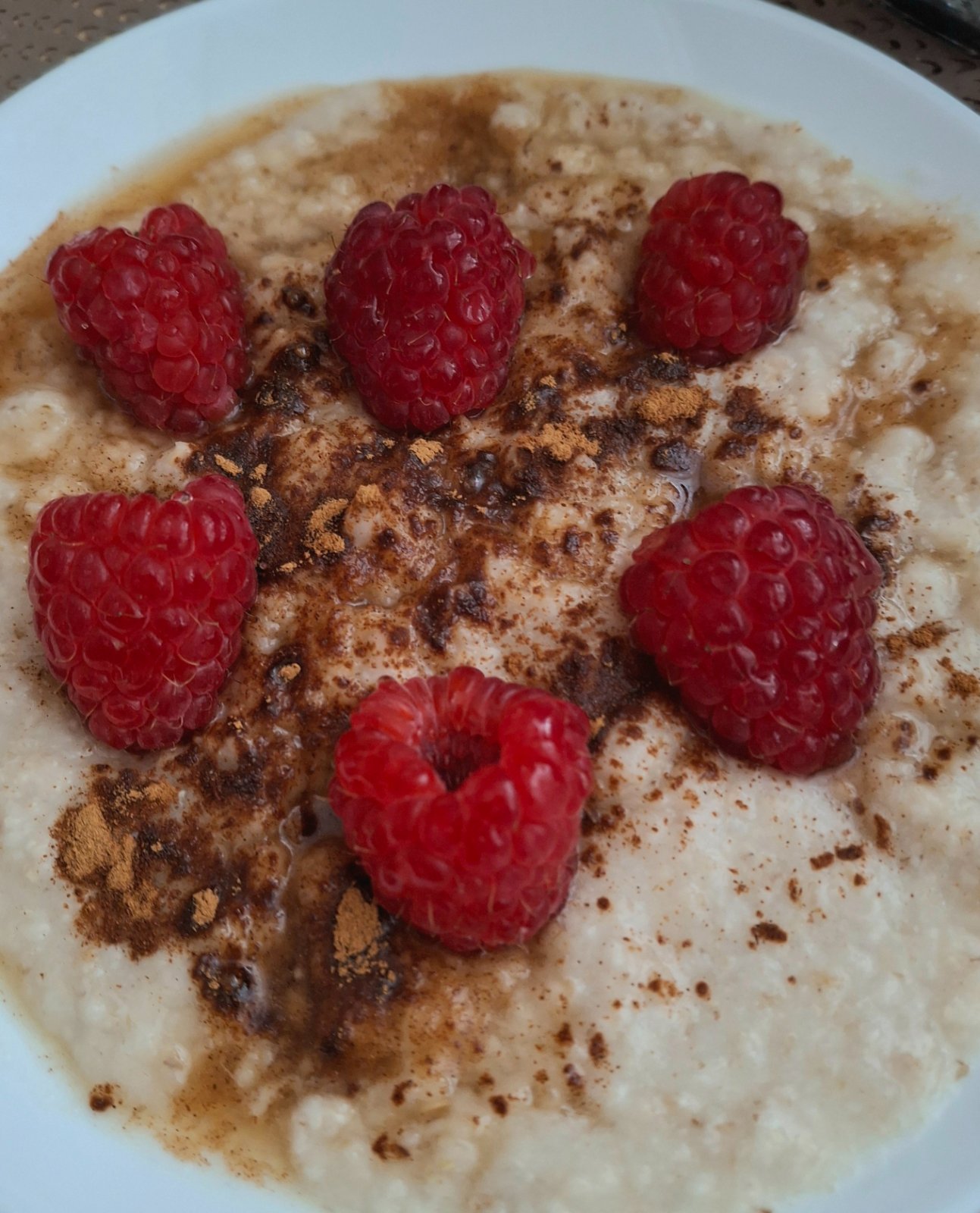 Minutova ovsena kasa,javorovy sirup,skorica,maliny
